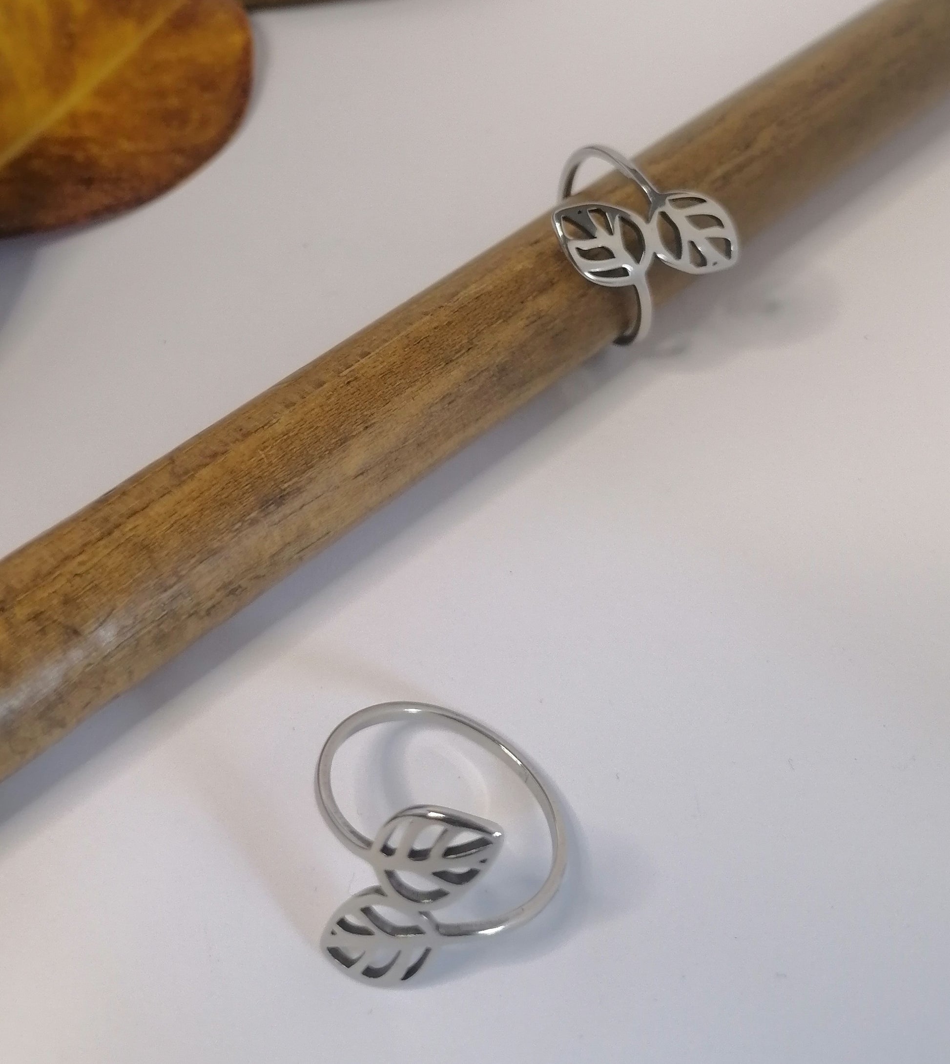 RQ004 | Anillo en acero inoxidable hojas