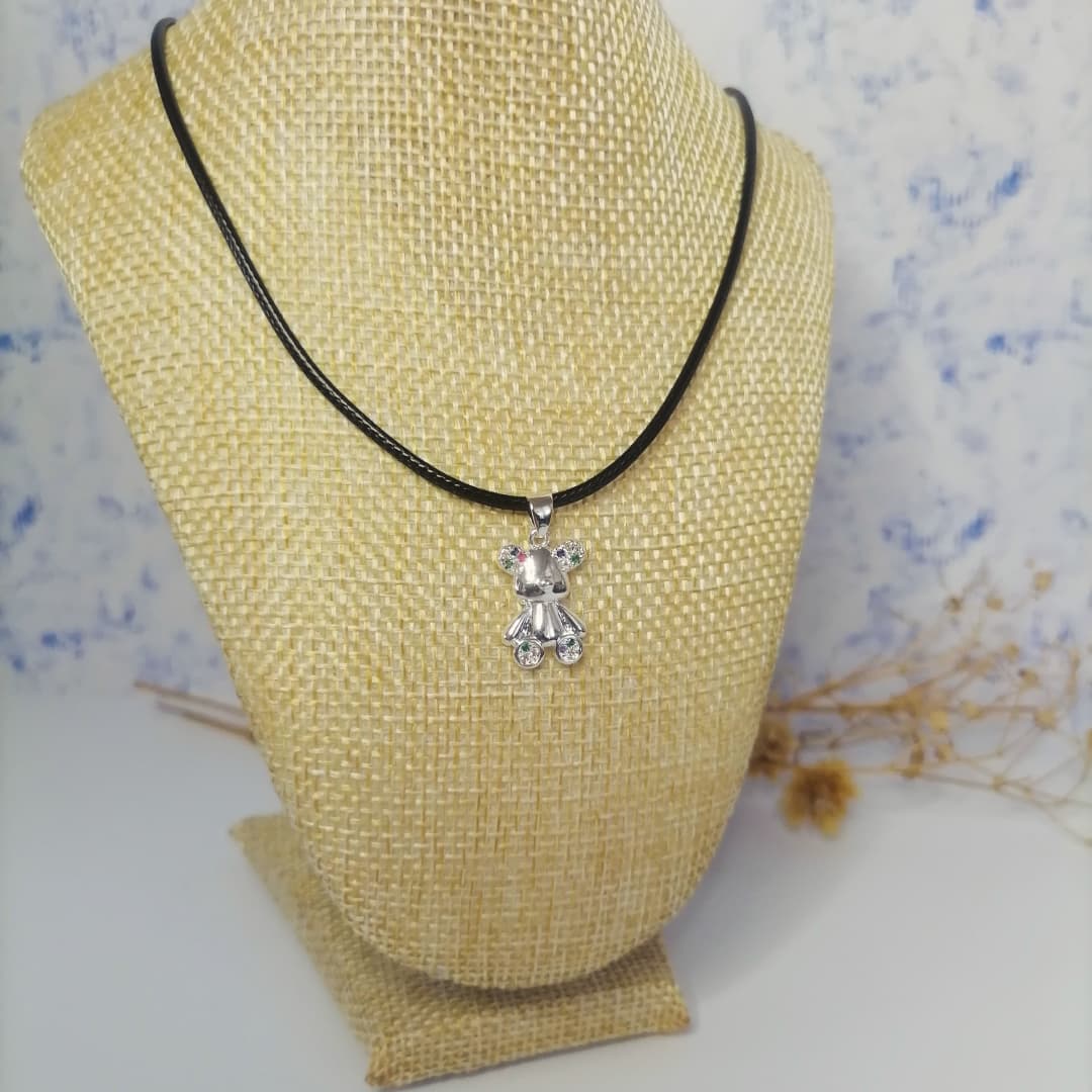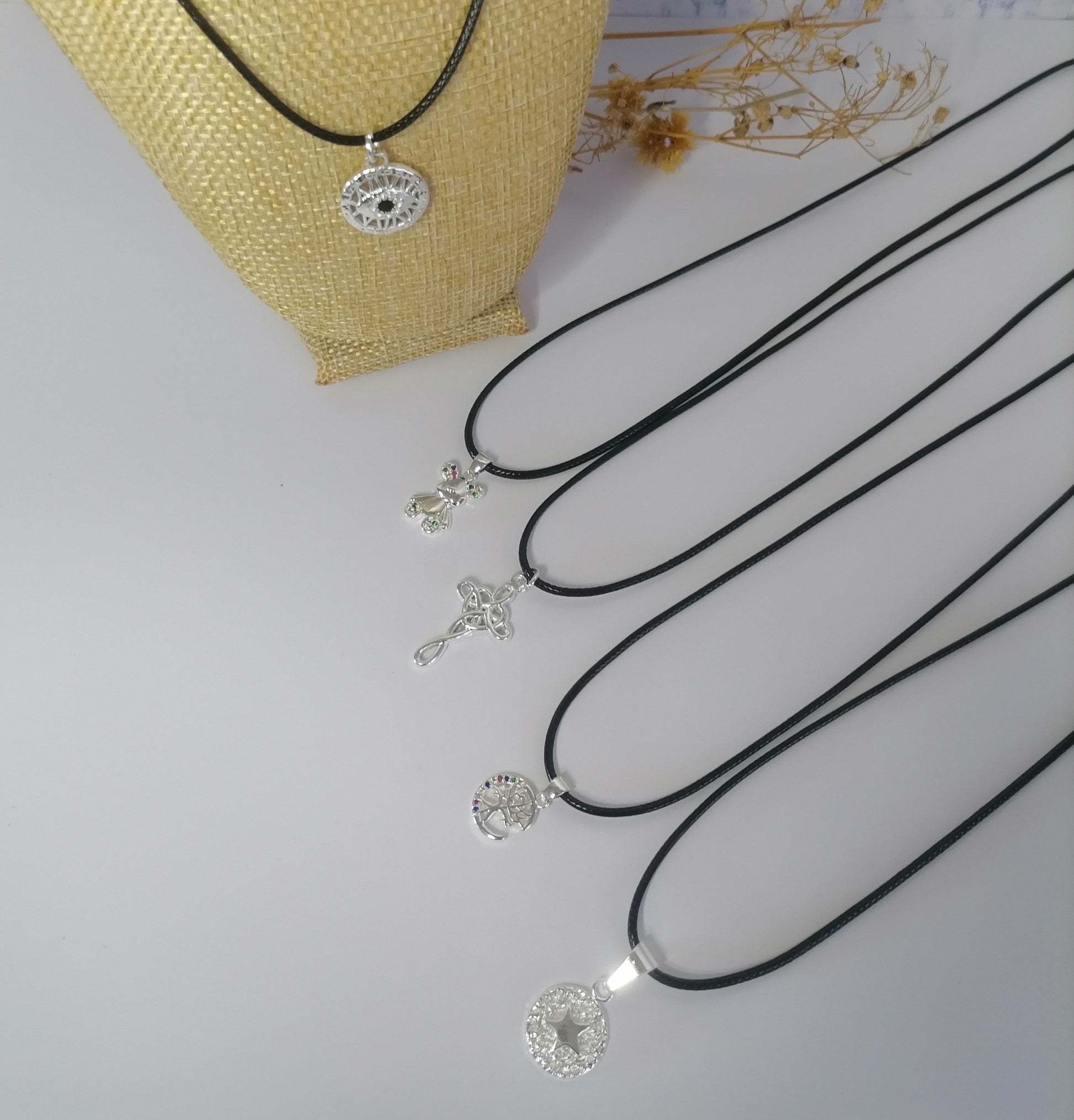 CQ028 | Colgante tiento negro y dije en acero blanco