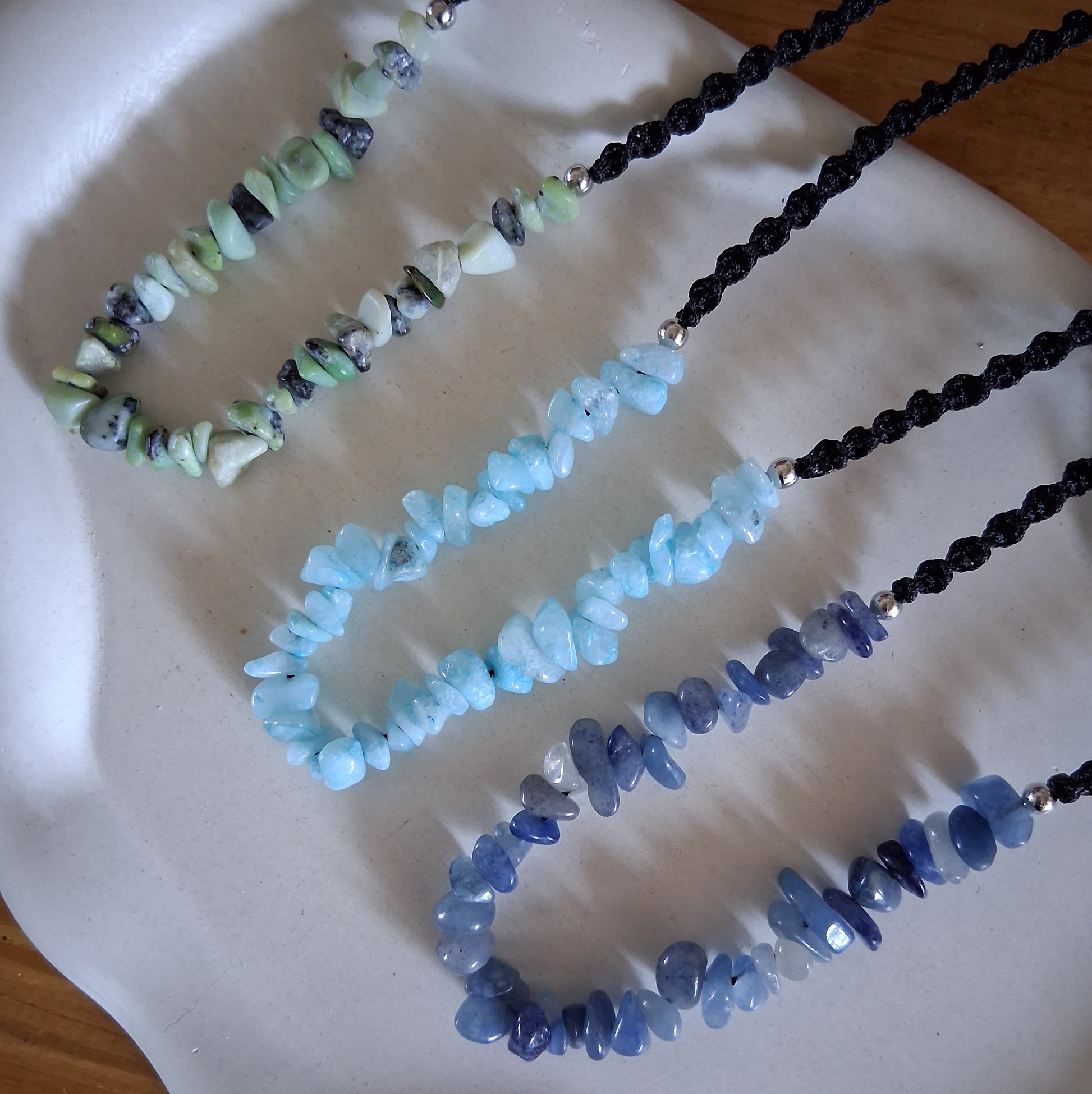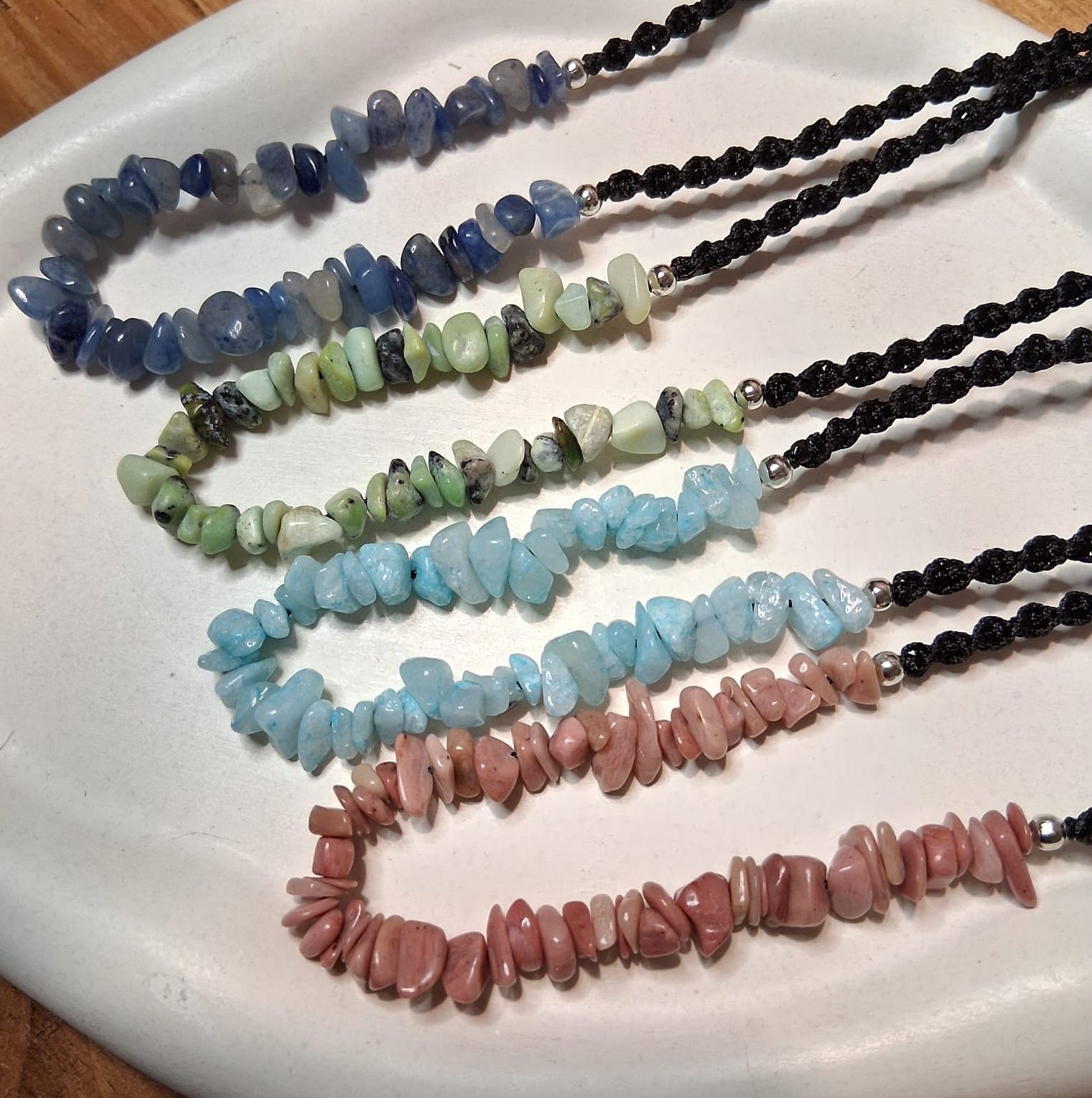 CS007 | Collar ajustable de escallas de piedras naturales y macramé
