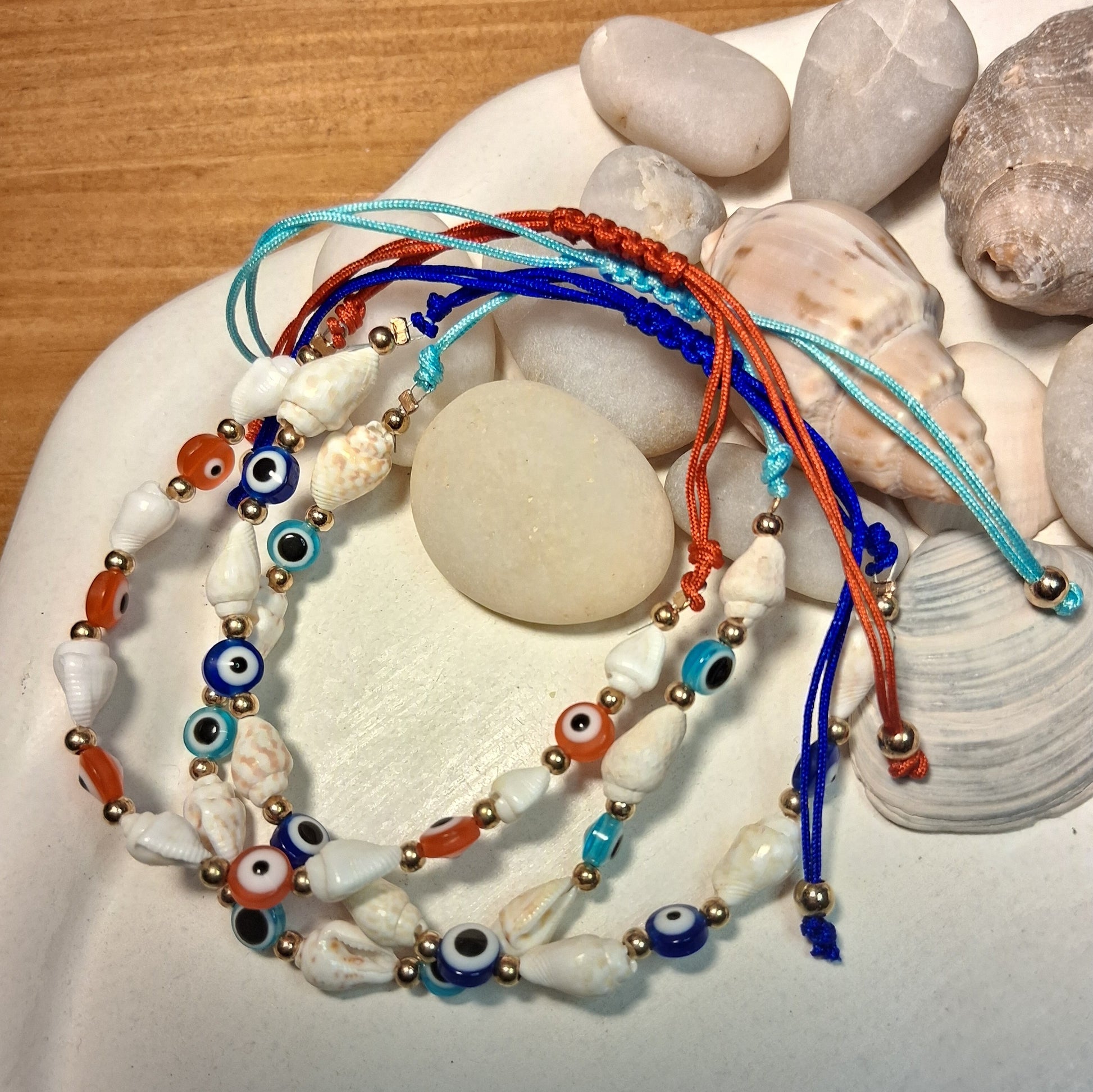 TB003 | Tobillera ajustable ojitos protectores y caracoles