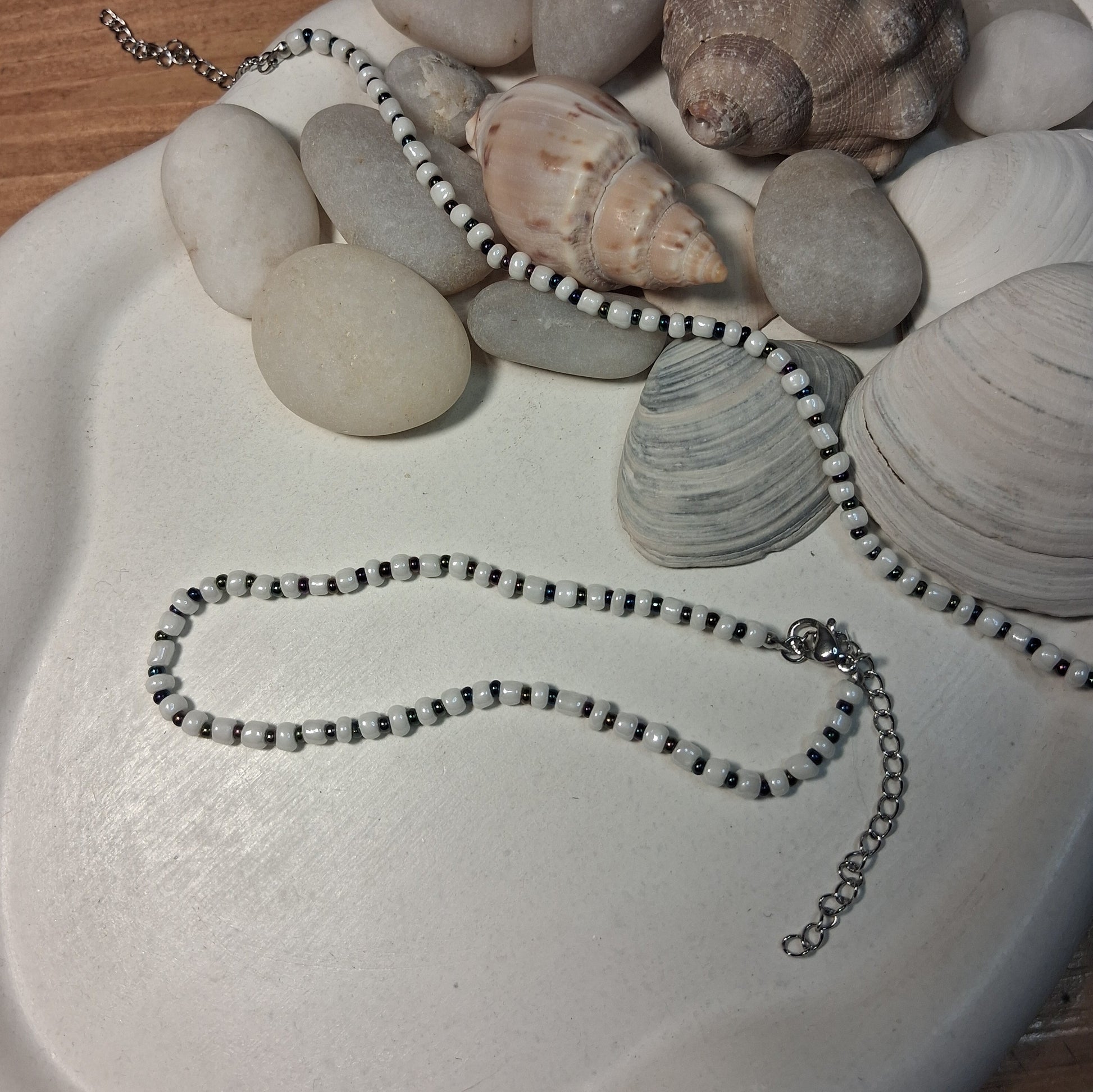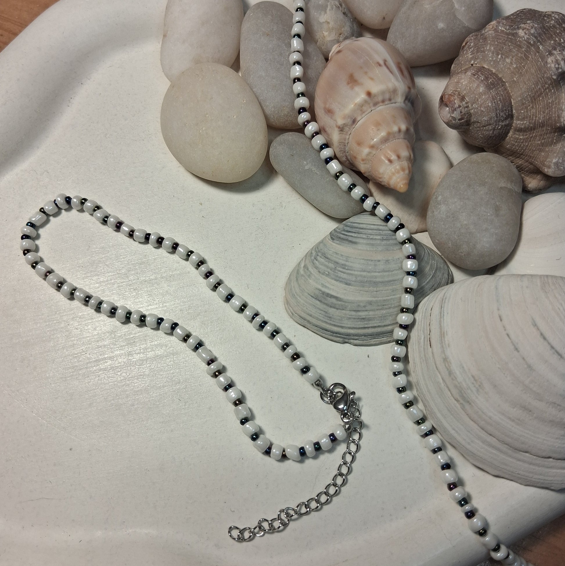 Cierre en acero inoxidable / Canutillos blancos y tornasolados de colores